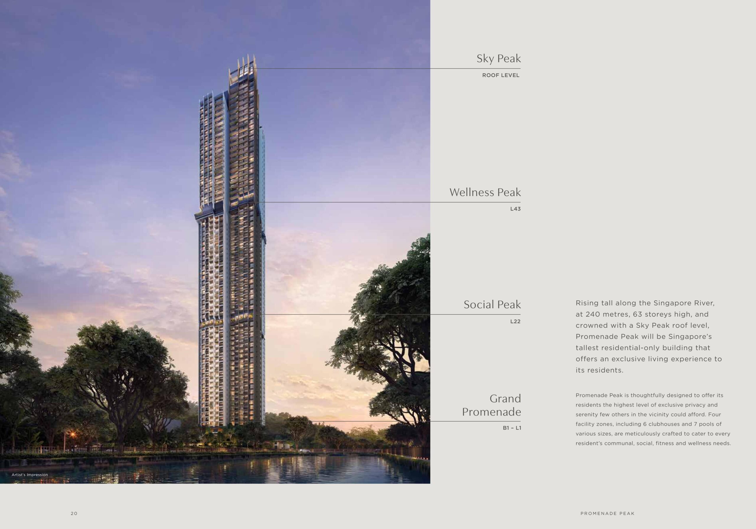 Take a look at the Promenade Peak Site Plan below to see the entire list of fantastic facilities and amenities interspersed within the luxurious layout of the entire development.